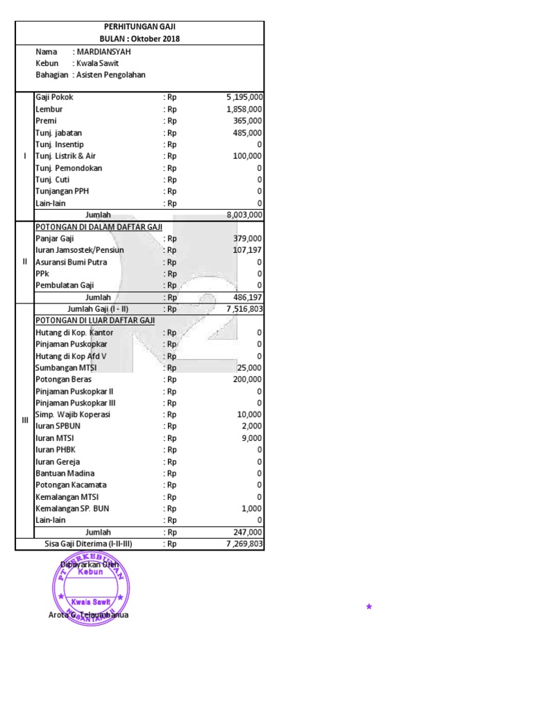 7 Contoh Slip Gaji Karyawan Guru Perusahaan Pns File Excel Bukubiruku
