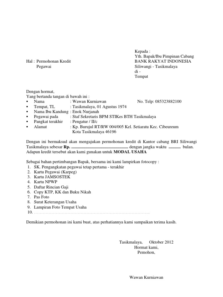 Contoh Proposal Pengajuan Kredit Ke Bank Bri Barisan Contoh